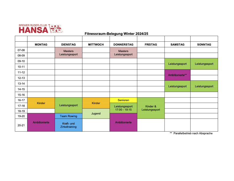 Der Plan für die Belegung des Fitnessraums im Winter 2024/25, als pdf
