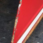 Nur durch Zufall wurde der schlimme Zustand des Bugs der Richard-Wagner entdeckt. Dabei hätte der Schaden unbedingt im Fahrtenbuch vermerkt werden müssen. Der Bug war beschädigt, so dass Wasser eindringen konnte. So konnte es nicht mehr gefahren werden. Zum Glück konnten wir (da gerade rote Farbe angerührt war) den Schaden schnell beheben.