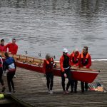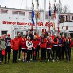 Gefehlt hat nur die Sonne. Ansonsten hatten wir mit dem Wetter viel Glück. Nach recht kalten und schmuddeligen Tagen erwischten wir einen Samstag mit gestiegenen Temperaturen und kaum Wind. Auch die Strömung, die uns im Herbst so manche Fahrt vergrault hatte, war erträglich. Das war die Belohnung für eine entbehrungsreiche Zeit, wo viele sich nicht aufs Wasser trauten oder witterungsbedingt eben auch nicht mochten. Nun wurden fünf Boote zu Wasser gelassen und der Saisonanfang eingeläutet. Wie war das noch mit den Kommandos? Welche Seite war jetzt Steuerbord? So eine Winterpause lässt auch den scheinbaren Routinier kurz wieder auf Anfängerniveau herab. Aber solche Momente können die Stimmung nur weiter heben und schon wird die Hausstrecke wieder in gewohnter Form abgerudert.