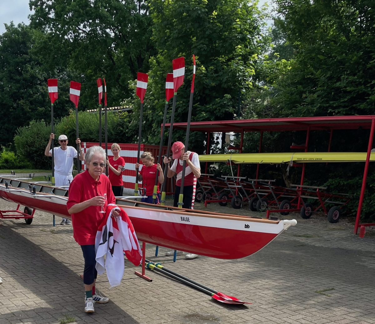 Weitere 31 Mitglieder folgten gerne dem Aufruf zur Bootstaufe des neuen Sechsers und Einweihung des renovierten Bootssteges. Mit dem Einzug des Sechsers in unsere Bootshalle ist wieder ein neues Bootskapitel geschrieben. Ute „Dorni“ Poppenheger taufte das Boot auf den Bootsnamen „Balge“. Die „Balge“, früher ein Nebenarm der Weser mit dem ersten Hafen in Bremen, wurde Mitte des 18. Jahrhundert komplett zu geschüttet. Jetzt erinnern wir mit dem Sechser mit jeden Ruderzug durch das Wasser auf der Weser an diesen wichtigen Wasserweg.