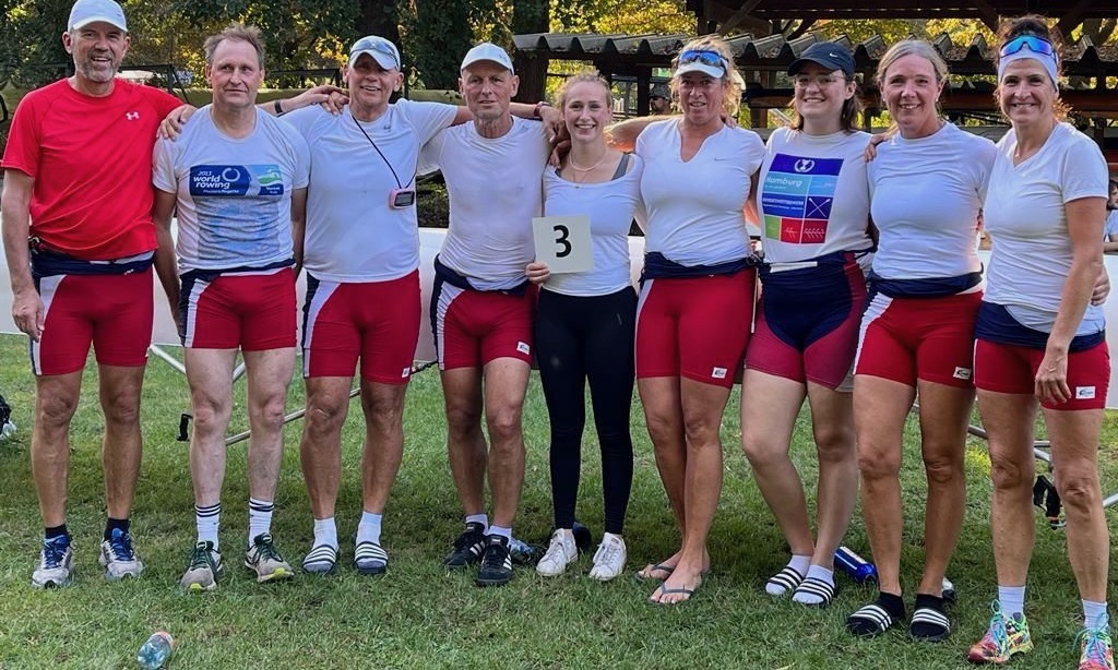 Der zweite Achter war eine Renngemeinschaft um Uwe und Karen, die sich im Rennachter auf die vier Kilometer Strecke machten. Leider hatte die Mannschaft ein wenig Nachteil beim Boot, aber trotzdem schlugen sie sich mit Bravour und erruderten einen beachtlichen zweiten Platz.