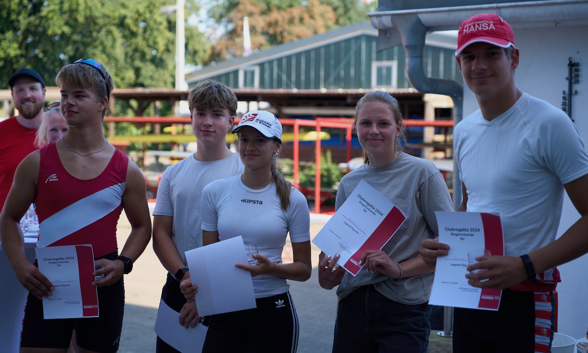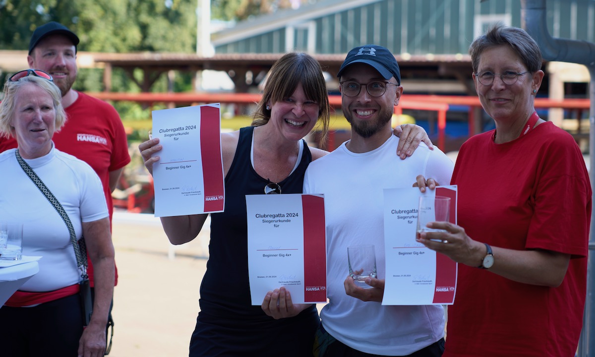 Am 1. September haben wir mit sieben Rennen unsere Clubregatta ausgetragen. Dank der guten Organisation von unserem Ruderwart Jan und unserer Sportvorsitzenden Traude klappte alles reibungslos. Besonderer Dank gilt der Schiedsrichterin Gesine und der Barkassenfahrerin Beke. Nicht zu vergessen die leckere Grillwürstchen von unserem Gastronom Goran. Alles passte mit super Stimmung und einem netten Miteinander. Der einzige Wehmutstropfen: wir hätten uns über mehr Schlachtenbummler:innen gefreut.